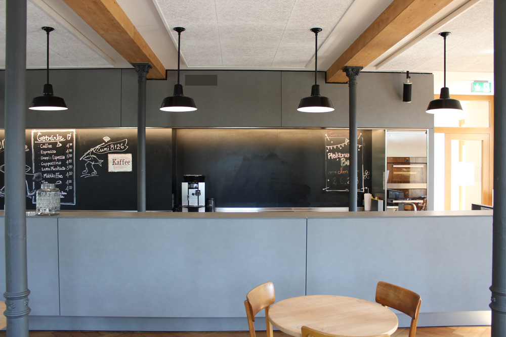 Die helle, heimelige Cafeteria (57m2) verfügt über eine offene, gut eingerichtete Küche mit Bistrotischen und Bestuhlung sowie einer Musikanlage. Der Raum eignet sich ideal für private Anlässe wie z.B. Geburtstage oder Feiern aller Art bis max. 40 Personen.