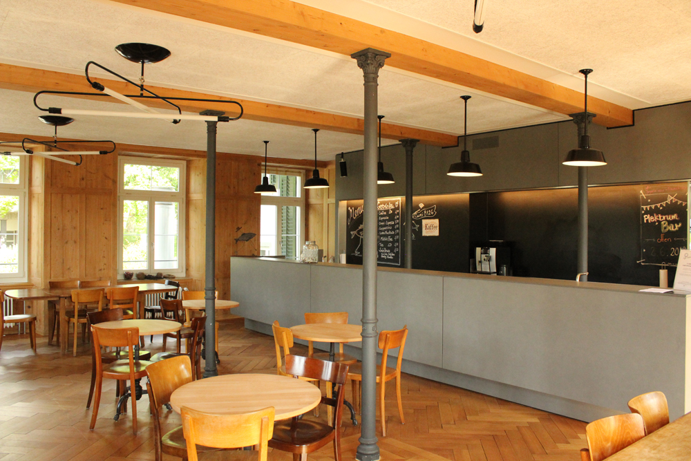 Die helle, heimelige Cafeteria (57m2) verfügt über eine offene, gut eingerichtete Küche mit Bistrotischen und Bestuhlung sowie einer Musikanlage. Der Raum eignet sich ideal für private Anlässe wie z.B. Geburtstage oder Feiern aller Art bis max. 40 Personen.